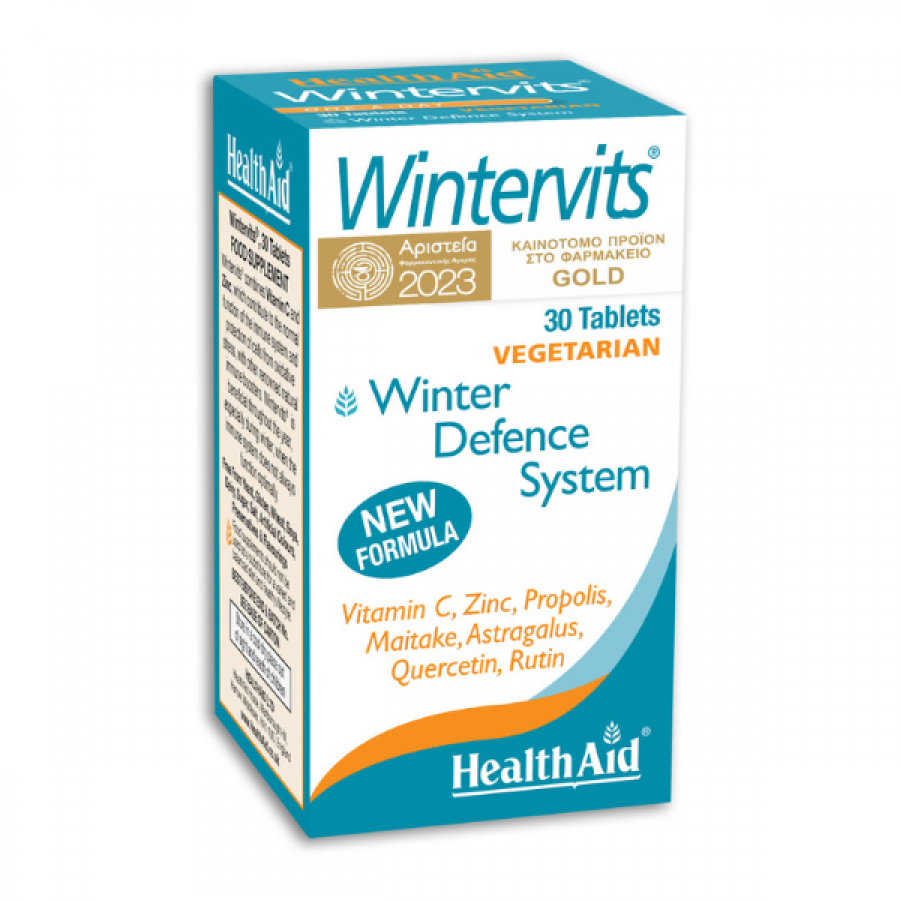 Το Wintevits της HealthAid είναι σύνθεση που συνδυάζει την Βιταμίνη C με Ψευδάργυρο, Μαϊτάκε, είδος μανιταριού με ιδιαίτερα τονωτικές ιδιότητες, Αστράγαλο και Πρόπολη. Περιέχει επίσης Ρουτίνη & Κουερσετίνη που είναι φυσικά βιοφλαβονοειδή με ισχυρές αντιαλλεργικές και αντιφλεγμονώδεις ιδιότητες.