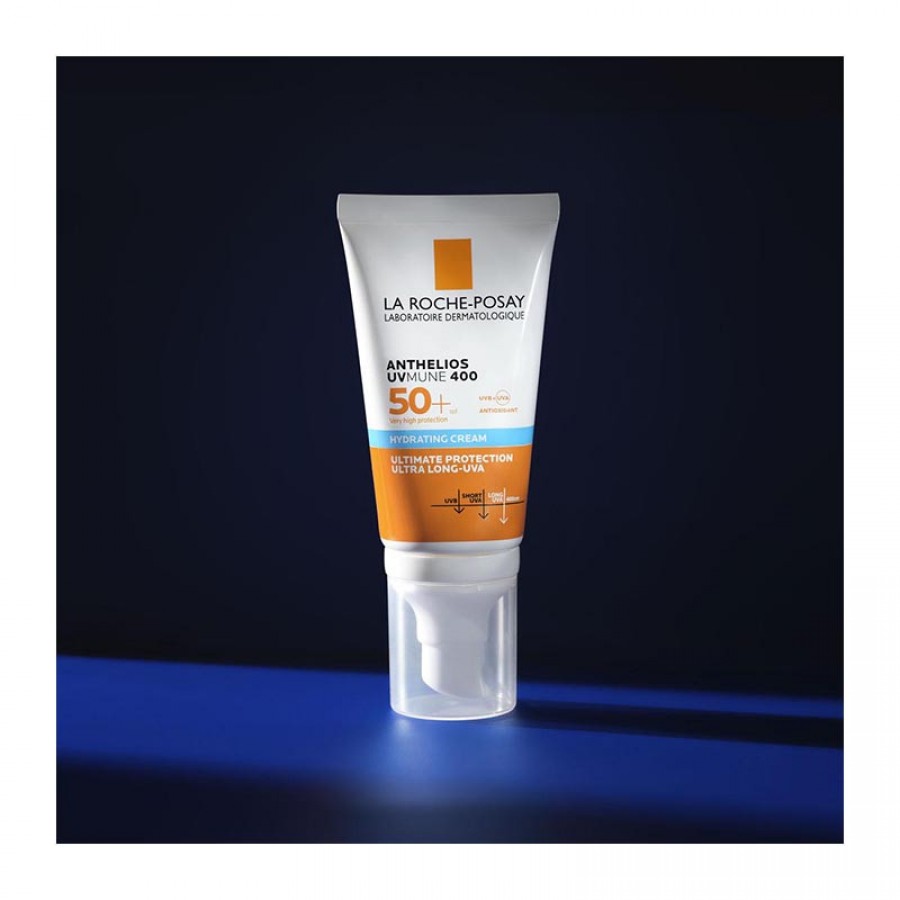 ANTHELIOS UVMUNE 400 HYDRATING CREAM SPF50+: Με MEXORYL400, το πιο αποτελεσματικό αντηλιακό φίλτρο κατά των πιο επιβλαβών ακτίνων UV: ULTRA ΜΑΚΡΕΣ UVA*.