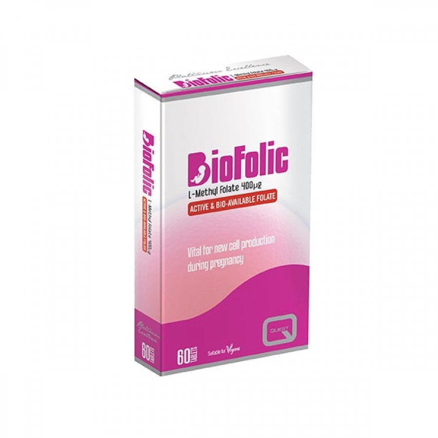 Συμπλήρωμα διατροφής με 400μg L-μεθυλοφολικό. Δραστικό, δβιοδιαθέσιμο φολικό. Με την ημερήσια συμπληρωματική λήψη 400μG φολικού οξέος για τουλάχιστον 3 μήνες πριν και μετά τη σύλληψη, αυξάνεται το επίπεδο των μητρικών φολικών που βοηθά στη μείωση του κινδύνου βλαβών στο νευρικό σύστημα του εμβρύου.
