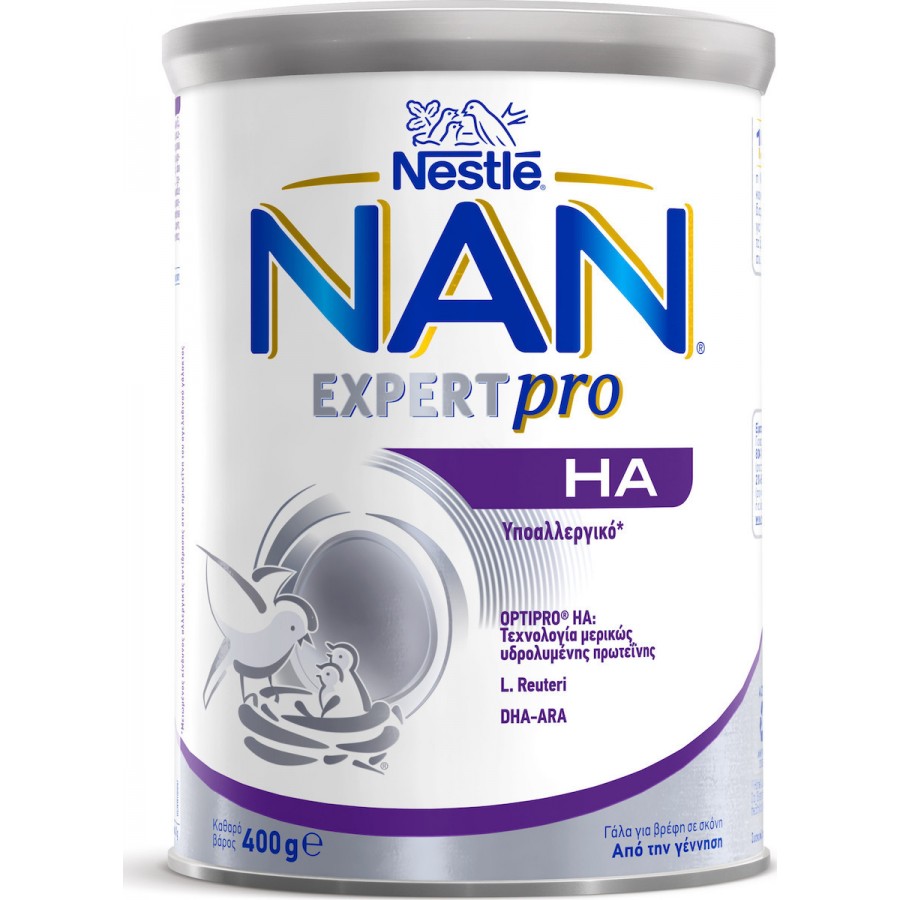 Το Nan Expertpro HA είναι ένα υποαλλεργικό γάλα για υγιή βρέφη από τη γέννηση, όταν δεν θηλάζουν. Είναι κατάλληλο ως αποκλειστική πηγή διατροφής για τους πρώτους 6 μήνες και μετέπειτα σε συνδυασμό με συμπληρωματικές τροφές σύμφωνα με τις συστάσεις του παιδιάτρου.