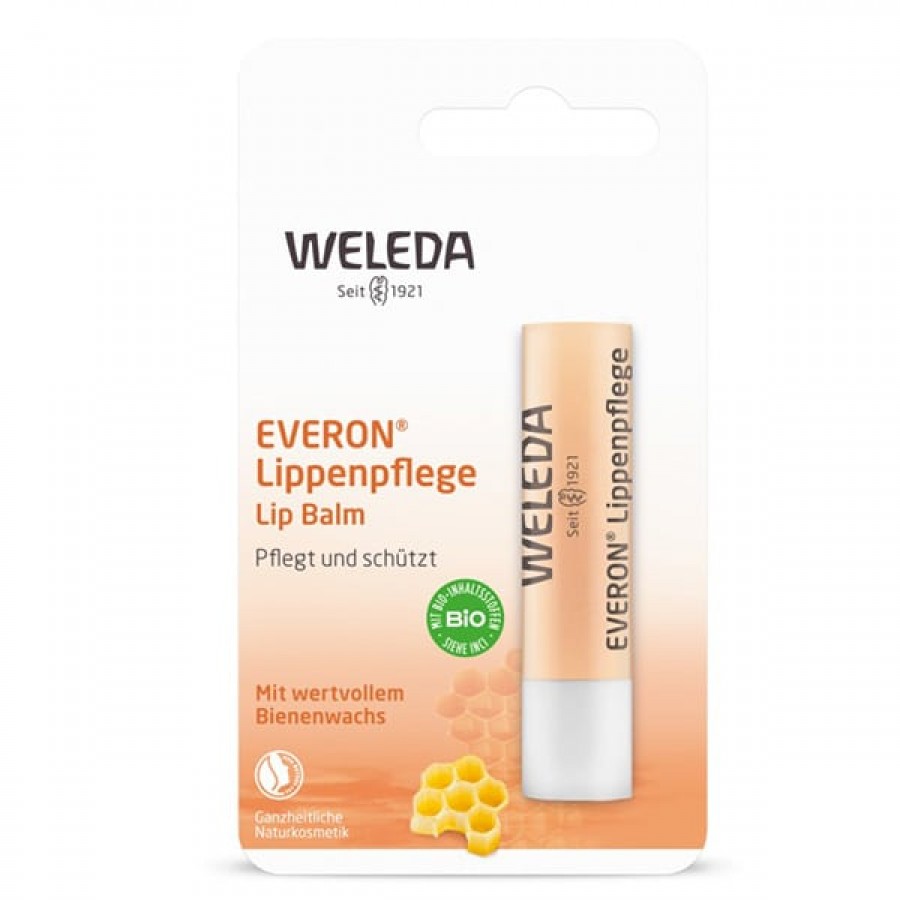 Εκτεθειμένη στο κρύο, τον αέρα και το φως του ήλιου, η ευαίσθητη επιδερμίδα των χειλιών αντιδρά με ερεθισμούς. Η περιποίηση χειλιών Everon της Weleda απαλύνει και περιποιείται – χωρίς να καλύπτει το δέρμα, διότι δεν περιέχει πρώτες ύλες με βάση το ορυκτέλαιο.
